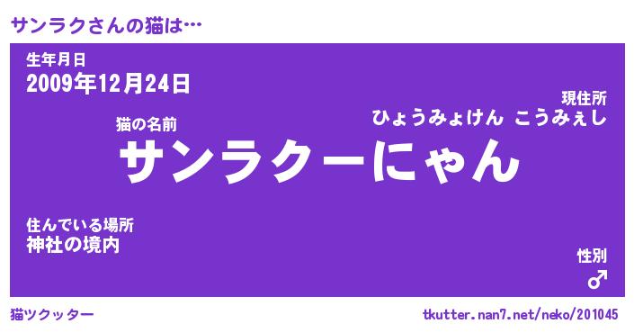 | 意味不明あだ名 | 『ペロリンサンラク』『永久保存サンラク』 |