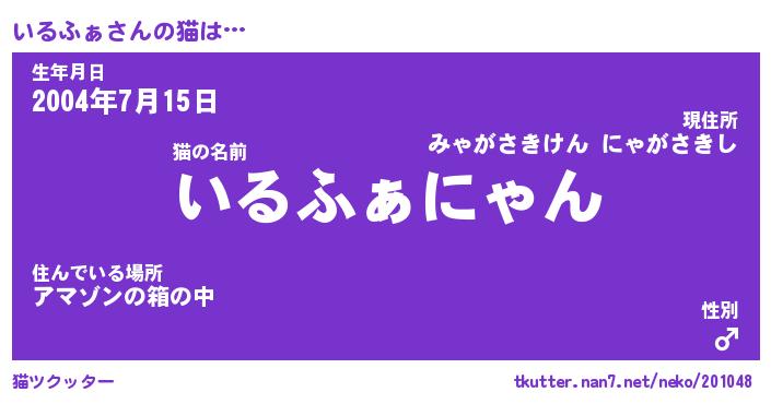 | 男性向けラノベタイトル風あだ名 | 『いるふぁの憂鬱』 |