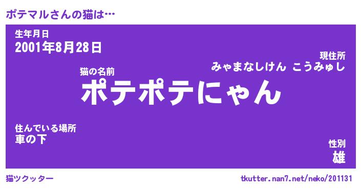 | 意味不明あだ名 | 『ペロリンポテマル』『永久保存ポテマル』 |
