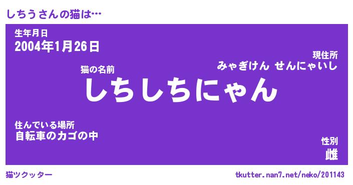 | ヘコむあだ名 | 『しちもー』『つくし』『しちっ子』 |