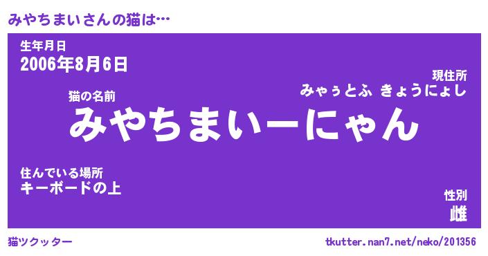 | ファンタジー風あだ名 | 『ミヤフェル』『エターナルミヤチマイー』 |