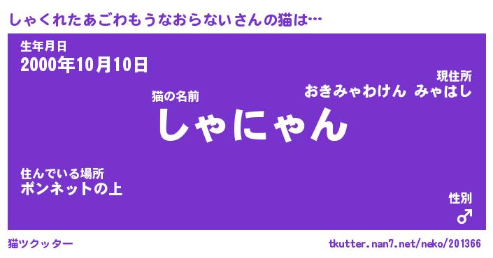 | 生年月日? …「くろねこ」 | 8月01日 10:16 |