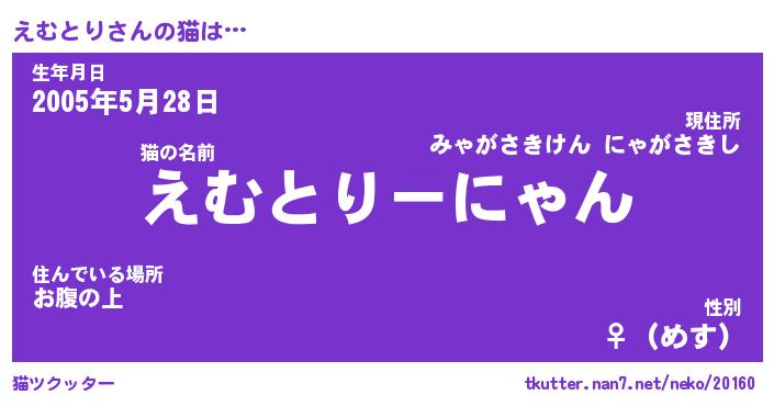 | 意味不明あだ名 | 『ペロリンえむとり』『永久保存えむとり』 |