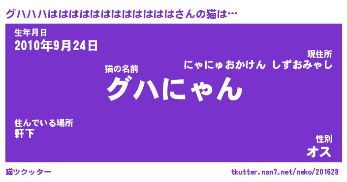 | 男性向けラノベタイトル風あだ名 | 『グハハハははははははははははははの憂鬱』 |