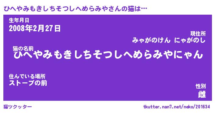 | ツイッター | ひへやみもきしちそつしへめらみやさんのツイッターID『konnyaku_man』 |