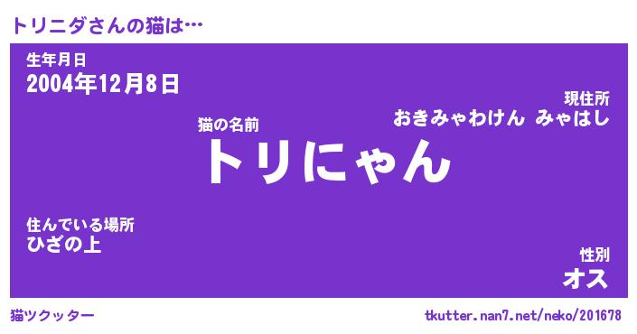 | ポケモン風あだ名 | 『トリチュウ』『トリニダネ』 |
