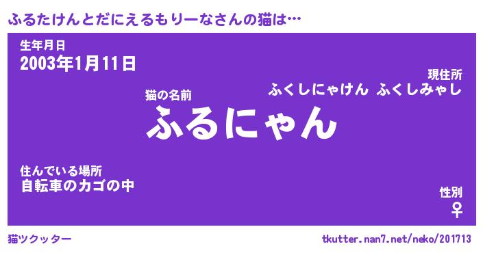 | ツイッター | ふるたけんとだにえるもりーなさんのツイッターID『tsukushi_star』 |