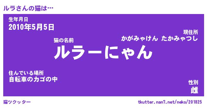 | ヘコむあだ名 | 『ルラにゅー』『豆乳』『ルラぷりん』 |
