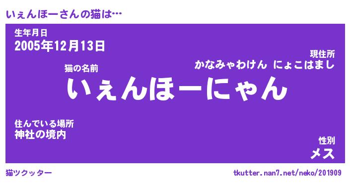 | 男性向けラノベタイトル風あだ名 | 『いぇんほーの憂鬱』 |