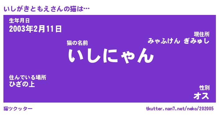 | 肩書あだ名 | 『いしがきともえ御曹司』 |