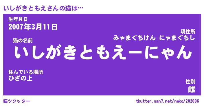 | 恥ずかしいあだ名 | 『プリティーいしがきともえ』『いしちん』 |