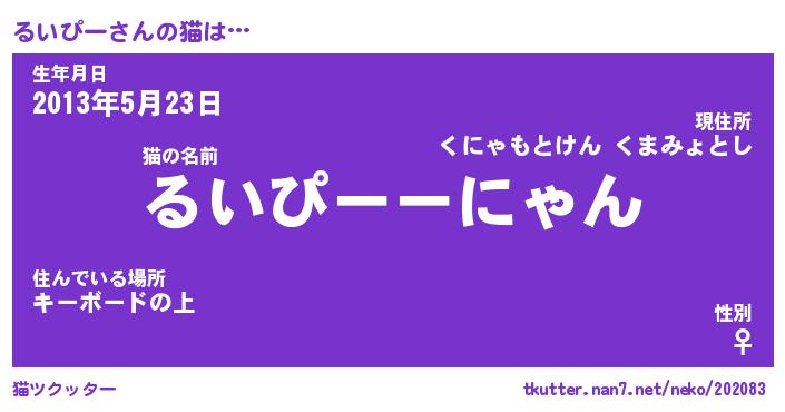 | 意味不明あだ名 | 『ペロリンるいぴー』『永久保存るいぴー』 |