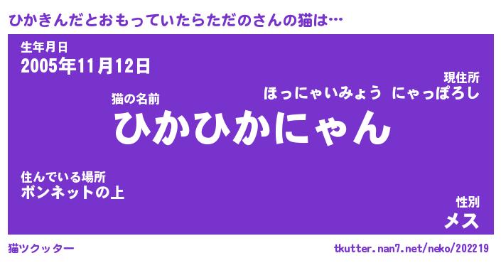 | ツイッター | ひかきんだとおもっていたらただのさんのツイッターID『dendenmushi_kun』 |