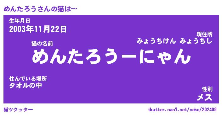 | ポケモン風あだ名 | 『メンチュウ』『メンタダネ』 |