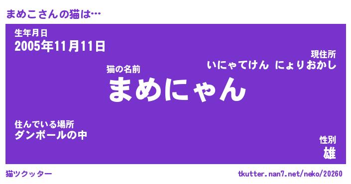 | 意味不明あだ名 | 『ペロリンまめこ』『まめこフォーエバー』 |