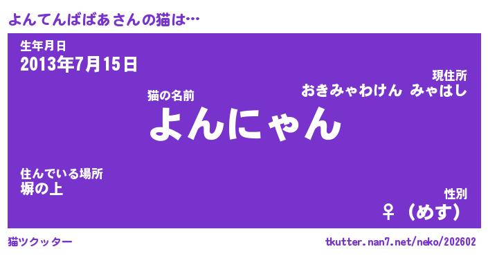 | 生年月日? …「くろねこ」 | 8月01日 10:16 |