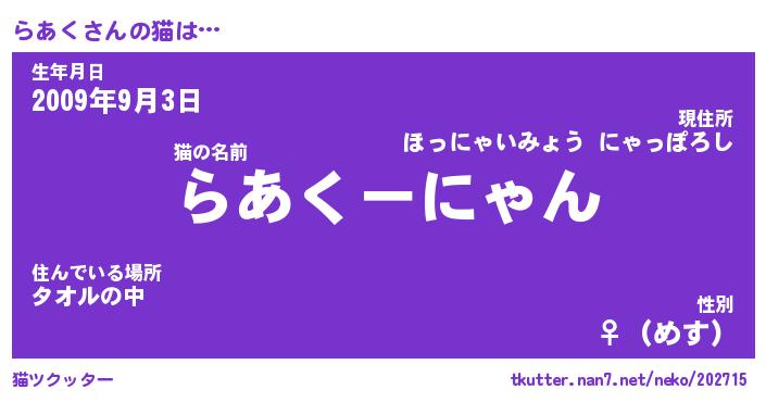 | 生年月日? …「くろねこ」 | 8月01日 10:16 |