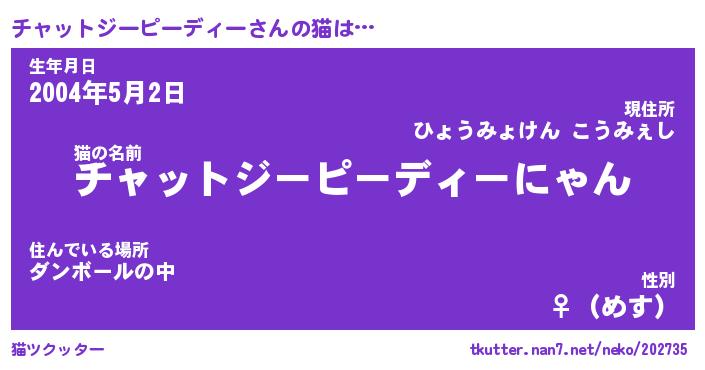 | 女子向けラノベタイトル風あだ名 | 『(仮)チャットジーピーディーのやんごとなき事情』 |