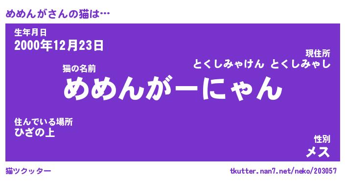 | 意味不明あだ名 | 『ペロリンめめんが』『永久保存めめんが』 |