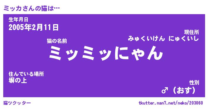 | 意味不明あだ名 | 『ペロリンミッカ』『ミッカフォーエバー』 |