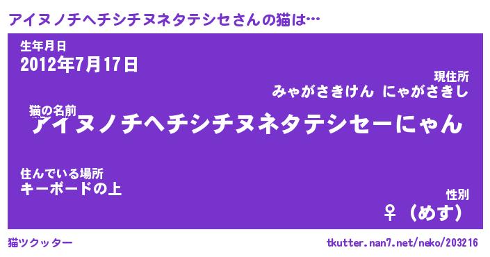 | 肩書あだ名 | 『アイヌノチヘチシチヌネタテシセ社長』 |
