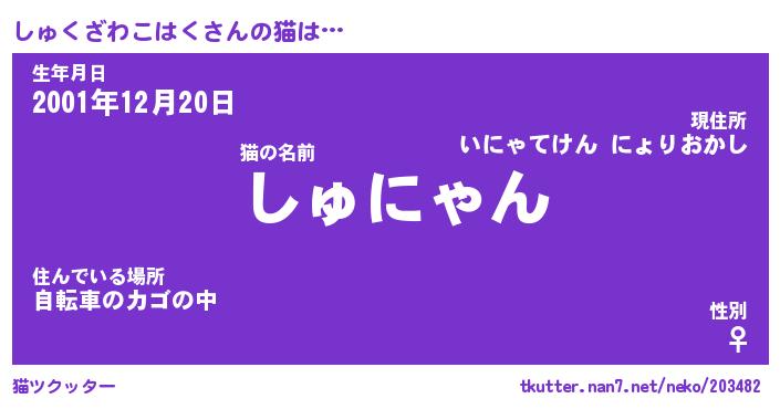 | ヘコむあだ名 | 『しゅっふぃ~』『つくし』『しゅを』 |