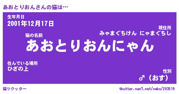 | 男性向けラノベタイトル風あだ名 | 『あおとりおんの憂鬱』 |