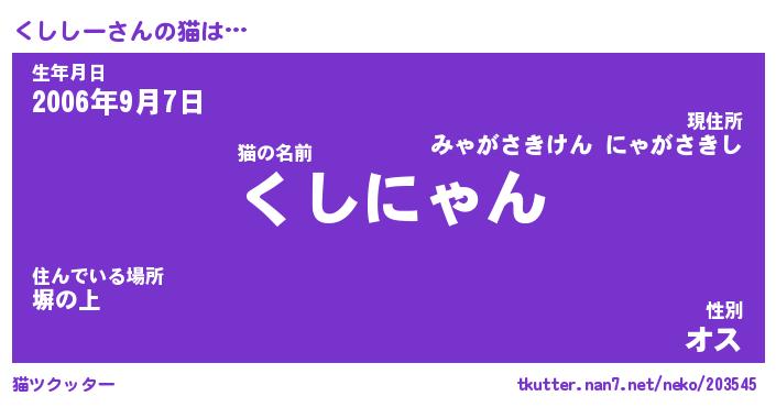 | 意味不明あだ名 | 『ペロリンくししー』『永久保存くししー』 |