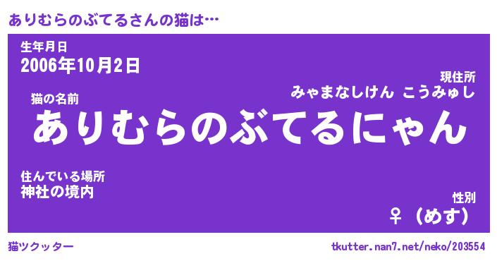 | 男性向けラノベタイトル風あだ名 | 『ありむらのぶてるの憂鬱』 |