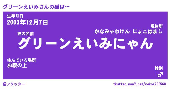 | 欧米人風あだ名 | 『マイケルグリーンえいみ』 |
