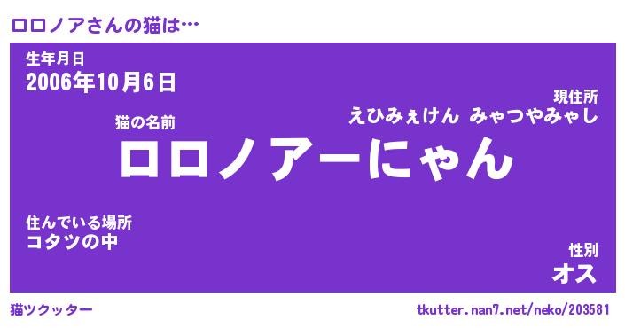 | 生年月日? …「くろねこ」 | 8月01日 10:16 |