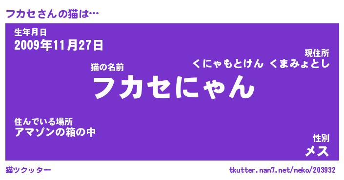 | ファンタジー風あだ名 | 『フカフェル』『エターナルフカセー』 |