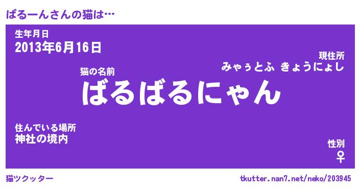 | 意味不明あだ名 | 『ペロリンばるーん』『永久保存ばるーん』 |