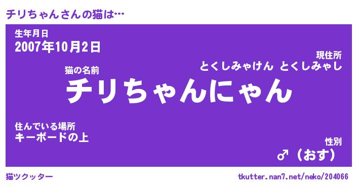 | 可愛いあだ名 | 『チんチん』『チリちー』 |