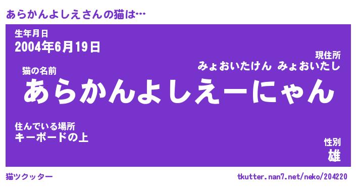 | 生年月日? …「くろねこ」 | 8月01日 10:16 |