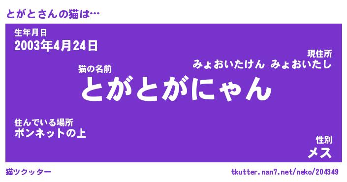 | ポケモン風あだ名 | 『トガチュウ』『トガトダネ』 |