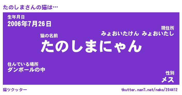 | 意味不明あだ名 | 『ペロリンたのしま』『永久保存たのしま』 |