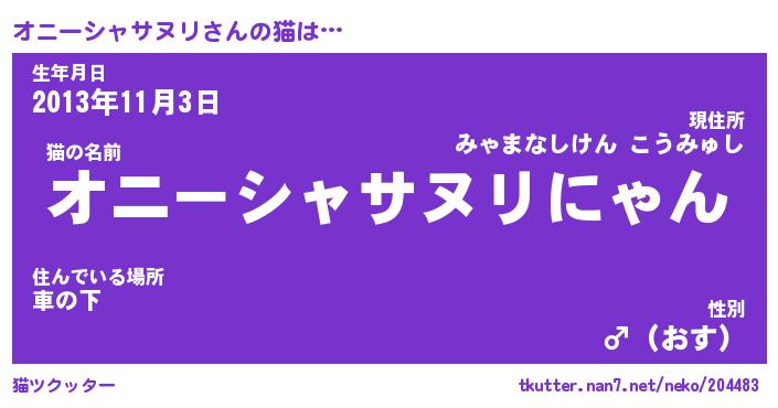 | 男性向けラノベタイトル風あだ名 | 『オニーシャサヌリの憂鬱』 |