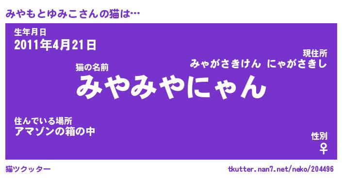 | 2回繰り返すあだ名 | 『みやみや』『みみやや』『なあなあ』 |
