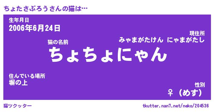 | ツイッター | ちょたさぶろうさんのツイッターID『katatsumuri_nyan』 |