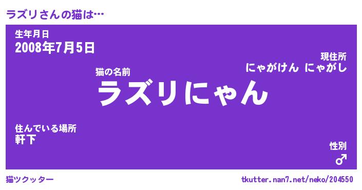 | 欧米人風あだ名 | 『マイケルラズリ』『ラズリクリステル』 |