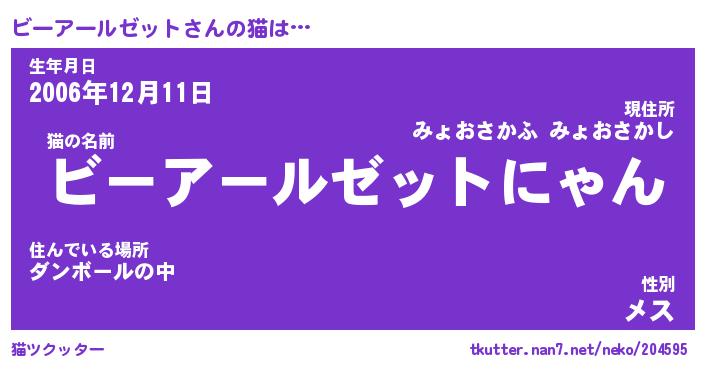 | 男性向けラノベタイトル風あだ名 | 『ビーアールゼットの憂鬱』 |