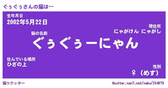 | ポケモン風あだ名 | 『グゥチュウ』『グゥグダネ』 |