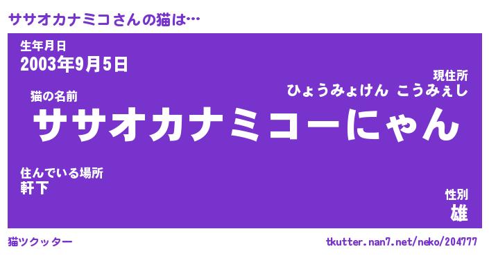 | 欧米人風あだ名 | 『マイケルササオカナミコ』 |