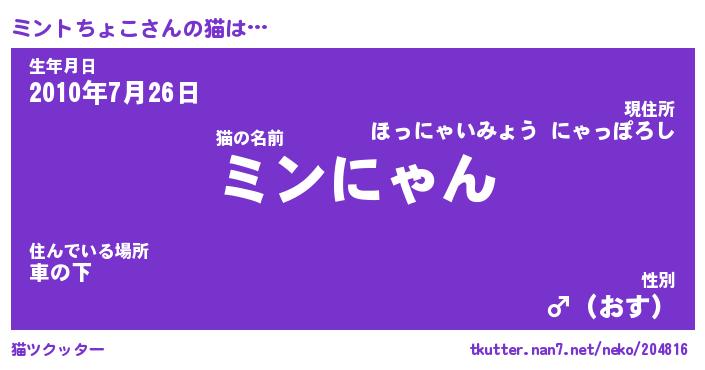 | ポケモン風あだ名 | 『ミンチュウ』『ミントダネ』 |