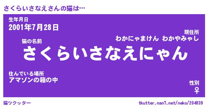 | 生年月日? …「くろねこ」 | 8月01日 10:16 |