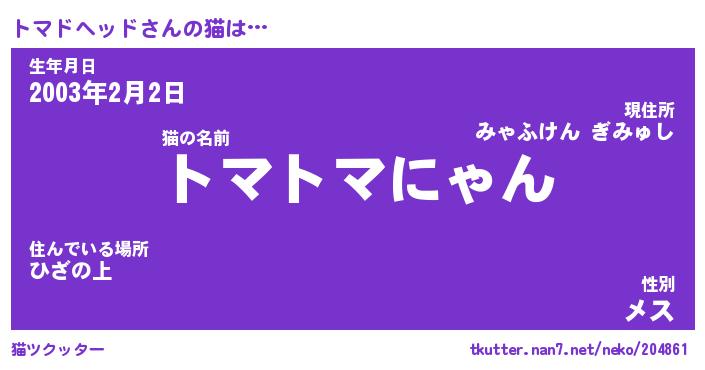 | ポケモン風あだ名 | 『トマチュウ』『トマドダネ』 |