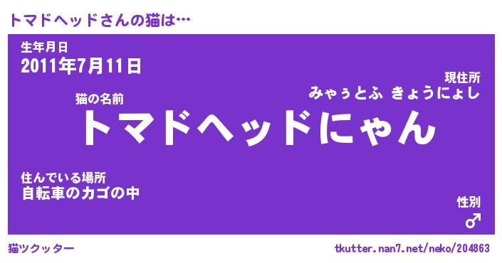 | 男性向けラノベタイトル風あだ名 | 『トマドヘッドの憂鬱』 |