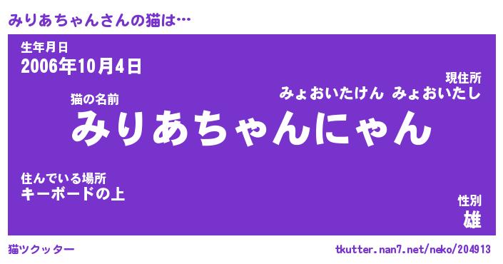 | 生年月日? …「くろねこ」 | 8月01日 10:16 |