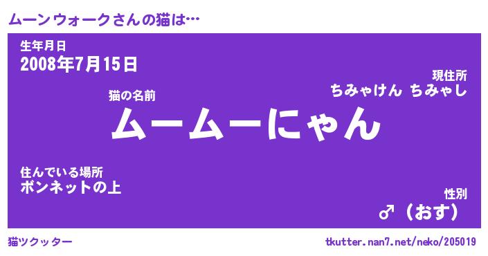 | ポケモン風あだ名 | 『ムーチュウ』『ムーンダネ』 |